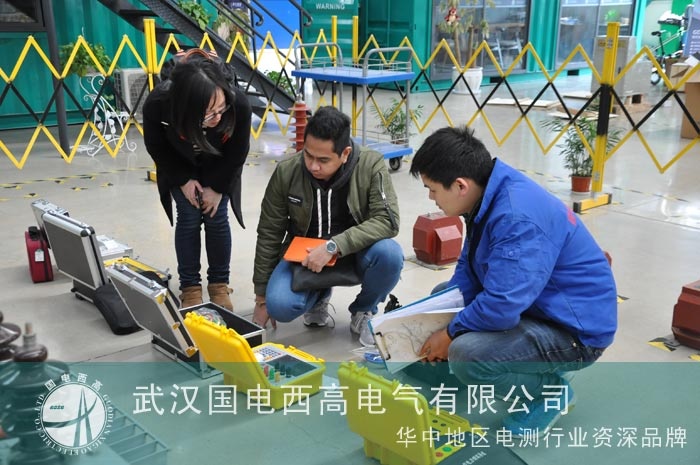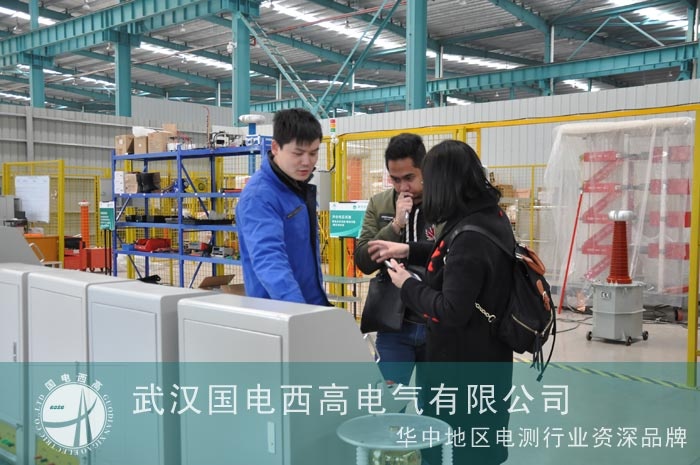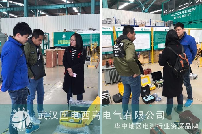 客户抵达公司后,先到我司生产厂房进行参观考察。客户重点考察了变压器变比测试仪,变压器空负载测试仪以及继电保护测试仪等相关产品,并在现场就实物进行了操作学习。
